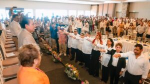 Saldaña Almazán expresó su respaldo a la nueva dirigencia encabezada por la maestra Josefina Verduzco Suárez, así como a las y los integrantes del Consejo Directivo 2026, a quienes deseó éxito en esta encomienda orientada al fortalecimiento social y económico del municipio.