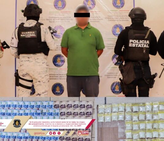 SSP Guerrero, FGE, Ejército Mexicano y GN detienen a un hombre con más de 40 dosis de droga y dinero en efectivo