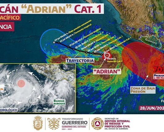 Tormenta tropical “Adrián” se intensificó a Huracán categoría uno