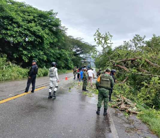 SSP Guerrero, SEDENA y GN retiran árboles caídos y piedras que obstruyen Carreteras Estatales