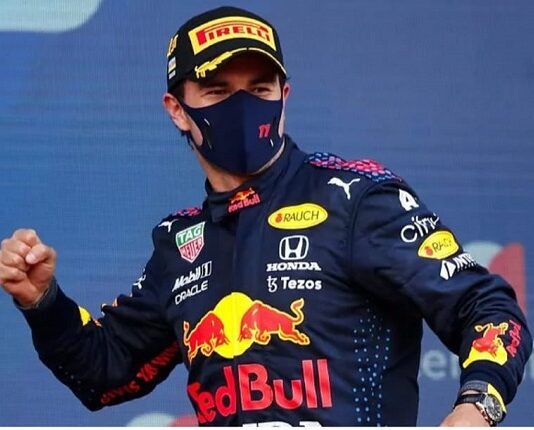 Checo Pérez festeja con Red Bull su triunfo en el GP de Azerbaiyán