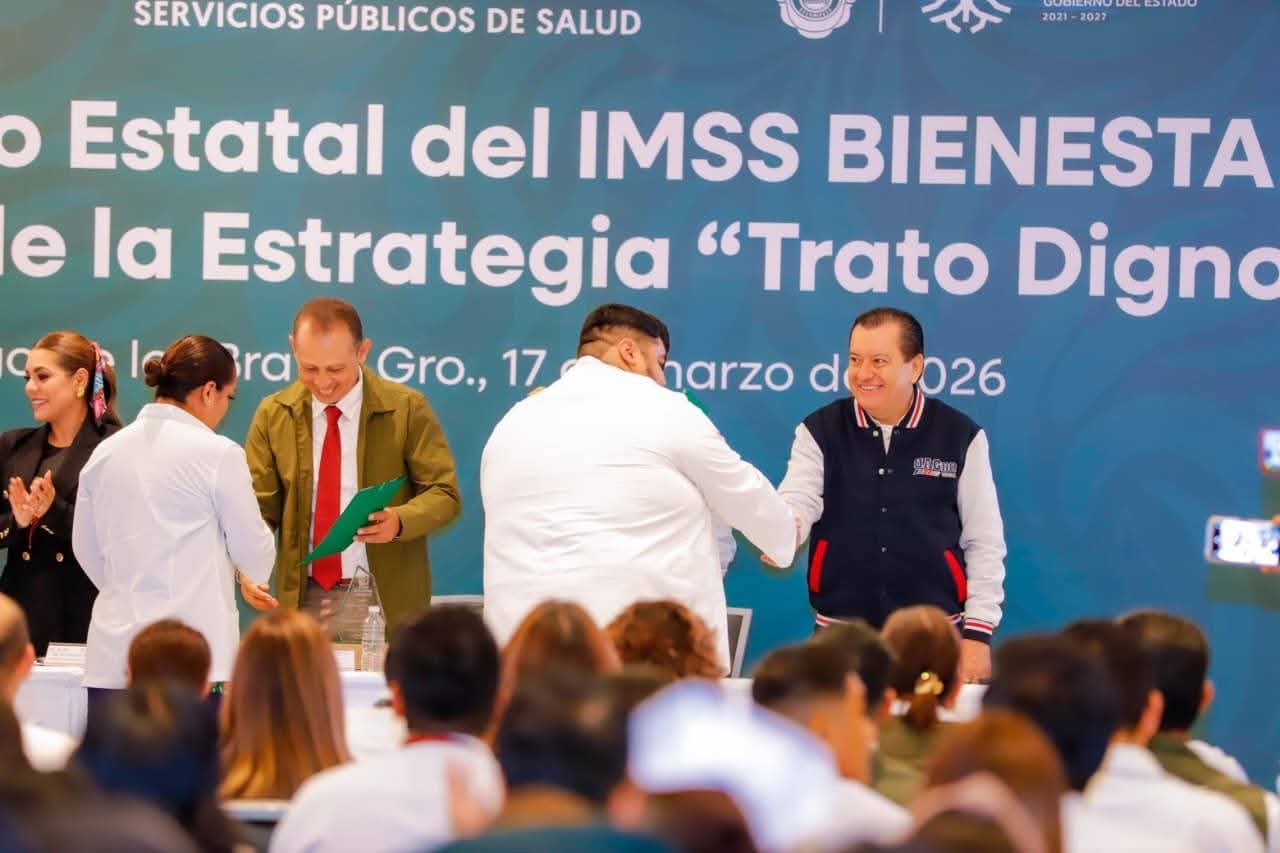Acapulco, Gro., a 19 de Marzo del 2026.- La Universidad Autónoma de Guerrero (Uagro) participó en el Primer Encuentro Estatal del IMSS Bienestar, realizado en el marco de la estrategia nacional “Trato Digno”, a invitación de directivos del sector salud y con la presencia de la Gobernadora, Mtra. Evelyn Salgado Pineda.