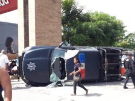 Choque entre patrulla de la Policía Estatal y un taxi dejó cuatro heridos