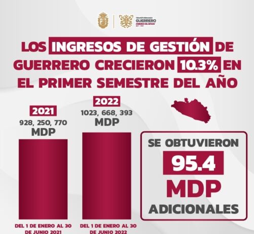 Gobierno de Evelyn Salgado logra recaudar 95.4 mdp más en comparación con el primer semestre del año pasado en ingresos