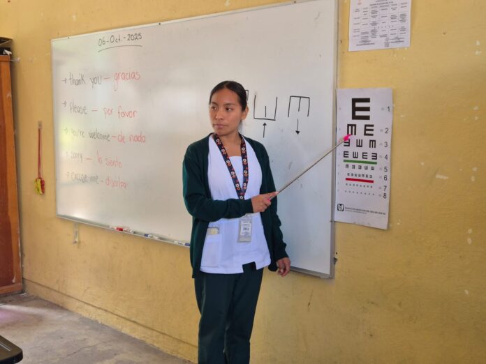Durante las brigadas -conformadas por personal del IMSS, SSA, DIF estatal y SEG- se realizan mediciones de peso y talla, salud visual y bucal, así como pláticas sobre estilos de vida saludable.