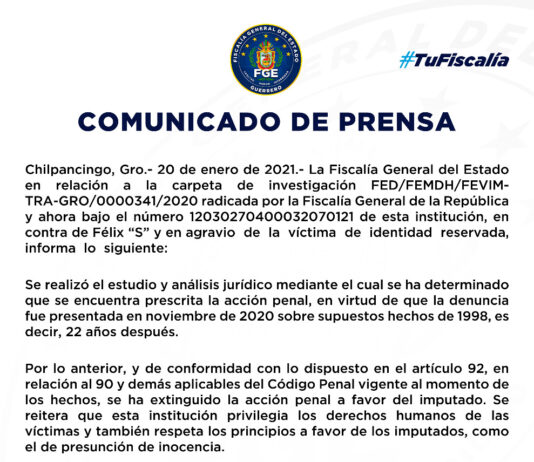 Denuncia contra Félix Salgado ya prescribió, informa la FGE