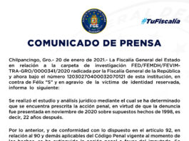 Denuncia contra Félix Salgado ya prescribió, informa la FGE
