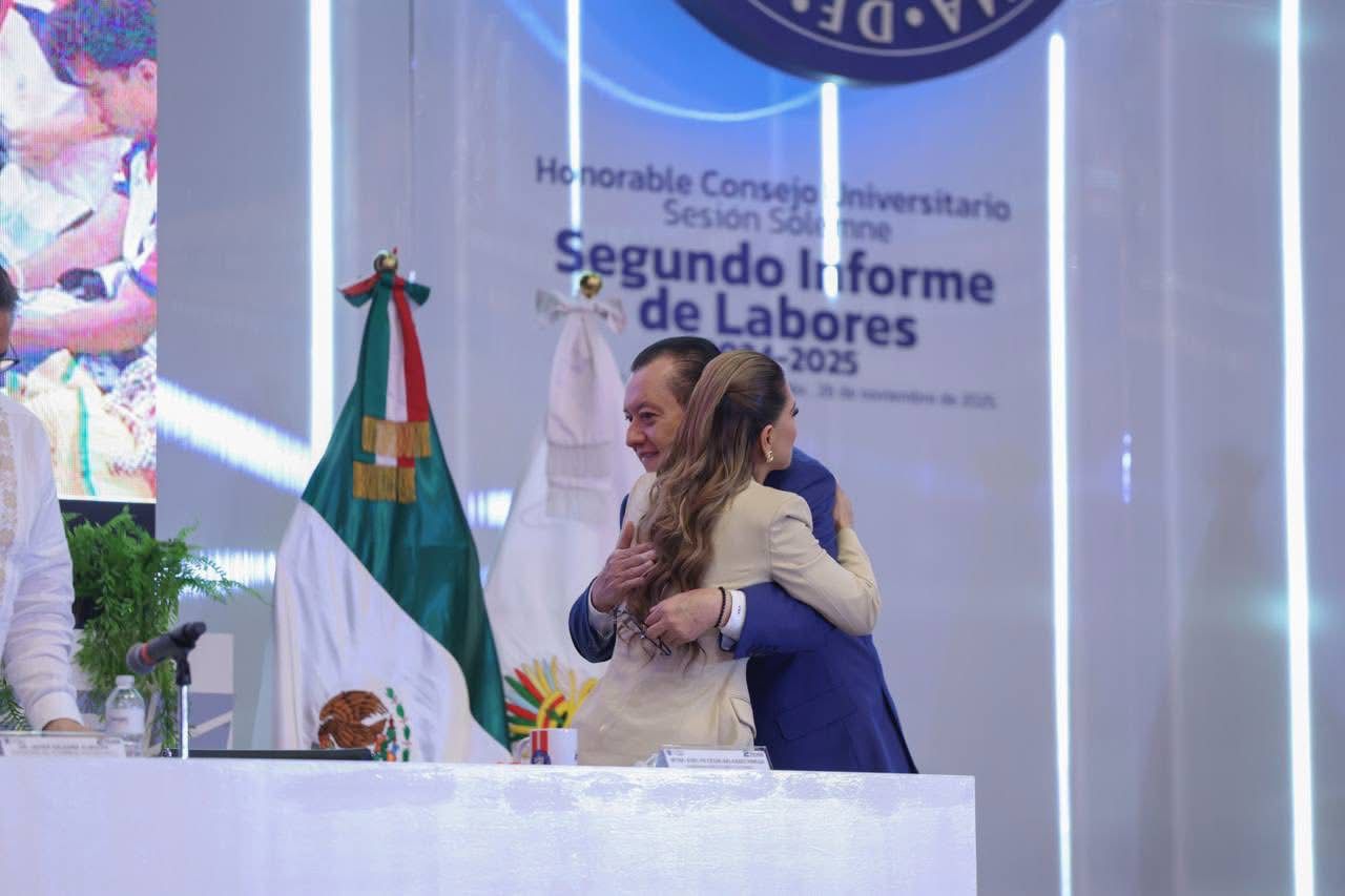 “Y en este proceso mucho ha tenido que ver la voluntad de una comunidad unida, la determinación de consolidar una visión hacia los próximos veinte años. Y el trabajo de nuestro rector, el doctor Javier Saldaña Almazán, que ha sido un gestor incansable para la Universidad”, señaló.