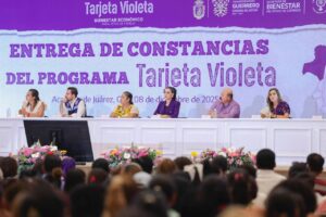 Salgado Pineda invitó a las beneficiarias a seguir siendo parte de este trabajo conjunto, destacando que la Tarjeta Violeta no nació para poner condiciones, ni para cumplir con un trámite; nació para acompañarlas y para que cada mujer tenga las herramientas reales que le permitan estudiar y seguirse desarrollando.
