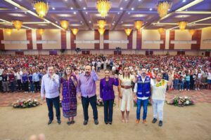 Acapulco, Gro., a 08 de Diciembre del 2025.- “Detrás de cada número está la historia de una mujer que decidió cambiar su vida; son mujeres que hoy dominan oficios que antes se creían que nada más eran para los hombres, mujeres que se prepararon para ser emprendedoras, mujeres que se prepararon para trabajar, para sostener a sus familias con independencia, con inteligencia, con libertad, mujeres que decidieron abrir sus alas”, señaló la gobernadora Evelyn Salgado Pineda ante poco más de 4 mil mujeres que recibieron su constancia del programa Tarjeta Violeta.