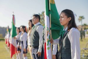 - Abandera a 27 escuelas de nivel medio superior en el Tehuehue y de manera simultánea con la presidenta Claudia Sheinbaum