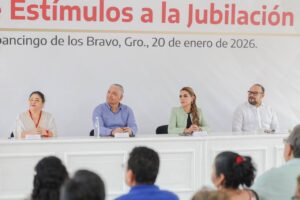 Chilpancingo, Gro., a 20 de Enero del 2026.- Con el reconocimiento a su labor profesional al servicio de la educación de niñas, niños y adolescentes de Guerrero, la gobernadora Evelyn Salgado Pineda entregó los estímulos a la jubilación 2025 a 878 trabajadoras y trabajadores de la educación, quienes concluyen una etapa con hasta 46 años de servicio en funciones docentes, directivos y administrativas.
