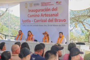 Chilpancingo, Gro., a 04 de Febrero del 2026.- La Gobernadora Evelyn Salgado Pineda inauguró el primer camino artesanal en la región Sierra que conecta a las comunidades de Iyotla y Carrizal de Bravo, en el municipio de Leonardo Bravo, como parte de las acciones para fortalecer la conectividad y el desarrollo de Guerrero.