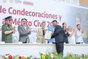 En este acto de justicia y reconocimiento, la gobernadora entregó tres condecoraciones y 15 premios al Mérito Civil a personas cuya trayectoria o acciones han dejado huella en los ámbitos social, cultural, científico, deportivo y de servicio público.
