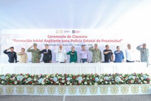 Chilpancingo, Gro., a 10 de Octubre del 2025.– La Gobernadora Evelyn Salgado Pineda encabezó la ceremonia de graduación del primer escalón 2025 del Curso de Formación Inicial para Policía Estatal de Proximidad, donde 69 nuevos elementos, entre ellos 36 mujeres, culminaron su adiestramiento y capacitación especializada para incorporarse a los trabajos de paz, seguridad y atención ciudadana de la Secretaría de Seguridad Pública de Guerrero.