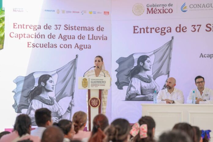 Acapulco, Gro., a 03 de Septiembre del 2025.- En una coordinación de esfuerzos entre los tres órdenes de gobierno y la iniciativa privada, la mandataria estatal, Evelyn Salgado Pineda, entregó 37 Sistemas de Captación de Agua de Lluvia del programa “Escuelas con Agua”, beneficiando a más de 7 mil 600 estudiantes, de diferentes instituciones de los municipios de Acapulco, Atoyac y Coyuca de Benítez. Con esta puesta en marcha, se fortalece la distribución y acceso a este servicio básico, construyendo un entorno más digno y sostenible para mejorar las condiciones de desarrollo de las comunidades educativas.