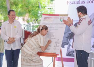 Luego de tomar protesta a los Comités integrados por alumnos, padres de familia y la comunidad educativa, la mandataria reiteró el compromiso del gobierno del estado, para seguir impulsando este tipo de acciones, que fortalezcan la infraestructura escolar y que, garanticen que el agua se convierta en bienestar y futuro para la niñez y juventud.