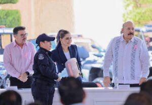 La gobernadora entregó un total de 72 unidades: 56 patrullas y 16 motopratrullas que se integrarán de inmediato a las operaciones de la Policía Estatal, reforzando la vigilancia en las ocho regiones.