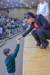 La gobernadora conversó con las y los estudiantes a quienes aconsejó alejarse de las malas amistades y atender los consejos de sus padres. “Efectivamente digan no, un no tajante a las drogas; las drogas nunca van a traer algo bueno a sus vidas”, expresó.