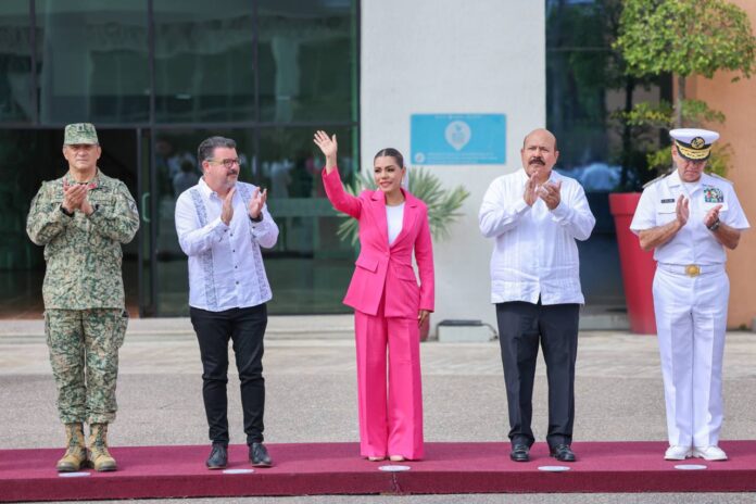 Chilpancingo, Gro., a 06 de Octubre del 2025.– Al encabezar la ceremonia cívica de Izamiento de Bandera correspondiente al mes de octubre, la gobernadora Evelyn Salgado Pineda reafirmó su compromiso de servir al pueblo de Guerrero con honestidad, empatía y sentido humano, al tiempo que hizo un llamado a fortalecer las acciones de prevención y detección oportuna del cáncer de mama en el marco del “Octubre Rosa”.