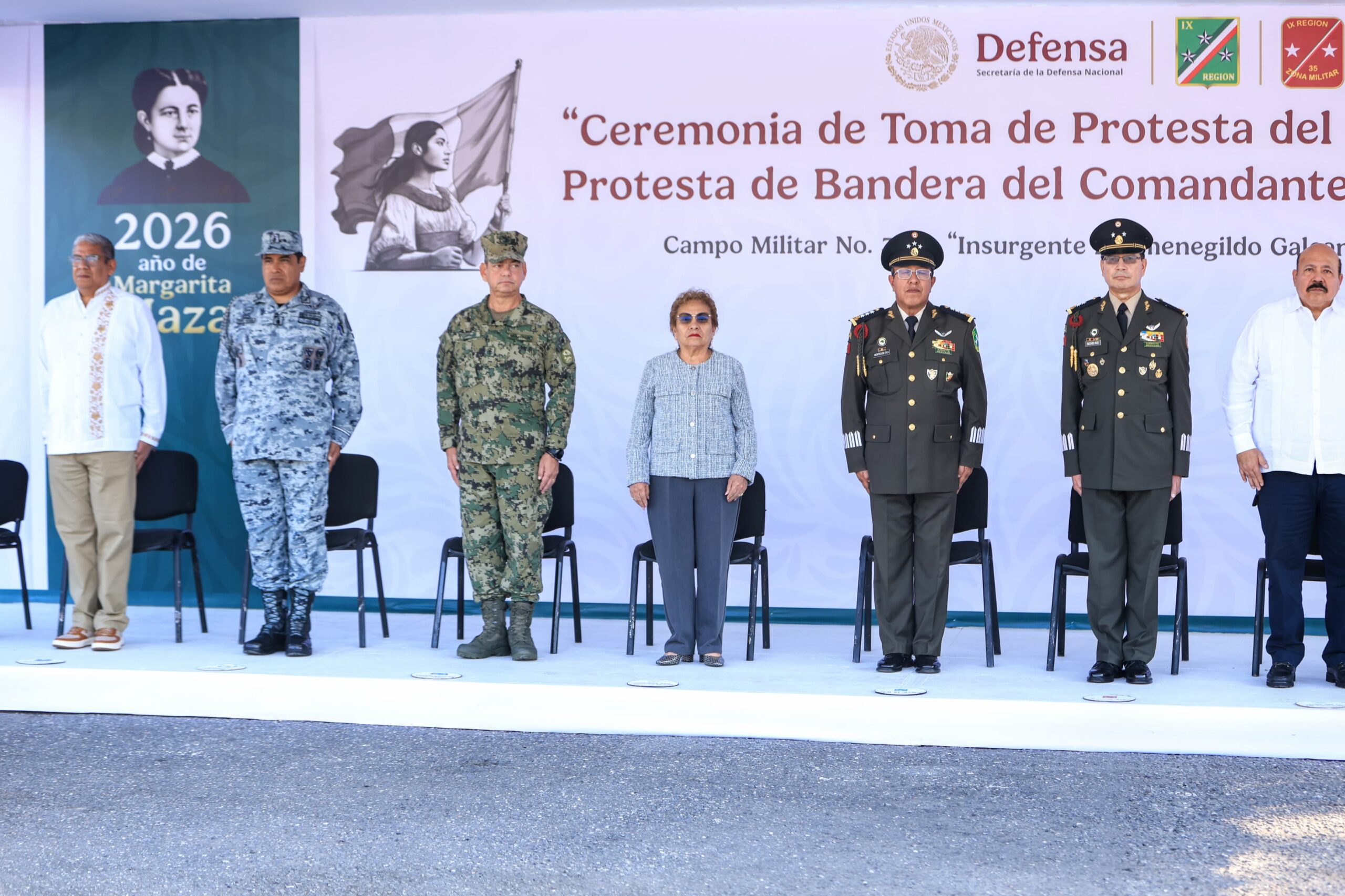 Chilpancingo, Gro., a 05 de Enero del 2026.- En representación de la gobernadora Evelyn Salgado Pineda, la encargada de despacho de la Secretaría General de Gobierno, Anacleta López Vega, asistió a la Ceremonia de Toma de Protesta del Cargo, Posesión de Mando y Protesta de Bandera del comandante de la 35/a Zona Militar, General de Brigada de Estado Mayor, José Francisco Moreno Barrera.