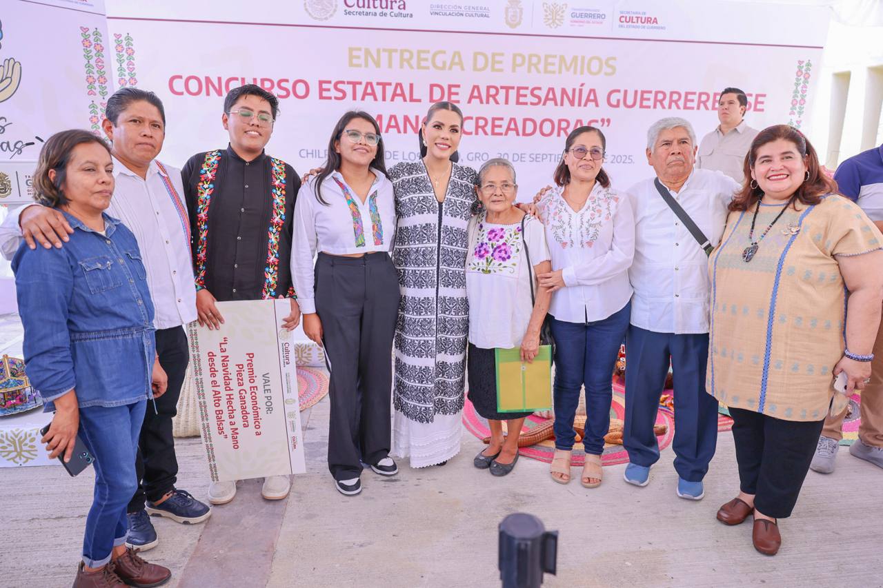 Chilpancingo, Gro., a 30 de Septiembre del 2025.– Con el compromiso de fortalecer la identidad cultural de Guerrero y reconocer el talento de quienes preservan sus tradiciones, la gobernadora Evelyn Salgado Pineda encabezó la entrega de premios del Concurso “Manos Creadoras 2025”, con la participación de más de 70 piezas artesanales, que reivindica el legado ancestral de la artesanía guerrerense.