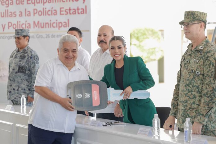 Chilpancingo, Gro., a 26 de Enero del 2026.– Para seguir avanzando con paso firme por un Guerrero más seguro, justo y en paz, la gobernadora Evelyn Salgado Pineda entregó equipamiento táctico y patrullas a la Policía Municipal de 29 municipios de la entidad, donde destacó la disminución de la incidencia delictiva en Guerrero, además de informar que Chilpancingo continuará con la presencia permanente de fuerzas federales, estatales y fuerzas armadas, con más de mil elementos de la Guardia Nacional y operativos en la Autopista del Sol.
