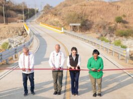 Evelyn Salgado inaugura la rehabilitación del puente “El Pedregal” junto al titular de la SICT, Jesús Esteva Medina