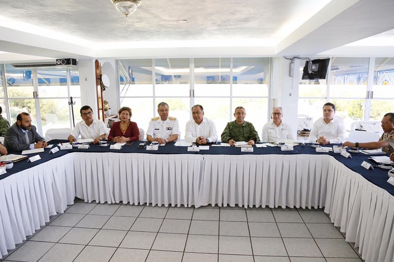 La reunión también presidida por el general Juan Manuel Rico Gámez, comandante de la Novena Región Militar y el almirante Francisco Lima López, comandante de la Octava Región Naval, el mandatario estatal revisó el esquema de seguridad y la incidencia delictiva.