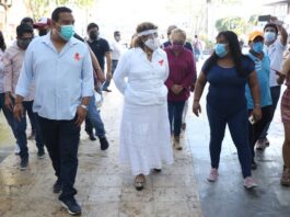 Supervisa Adela Román trabajos de limpieza en el zócalo de la ciudad