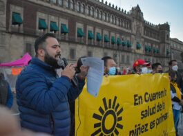 Protesta PRD en Palacio Nacional porque la SSA se niega a aplicar vacunas anti-COVID a menores en Guerrero