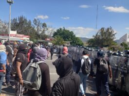 Fuerzas de Seguridad impiden a normalistas tomar la caseta de cobros en Palo Blanco