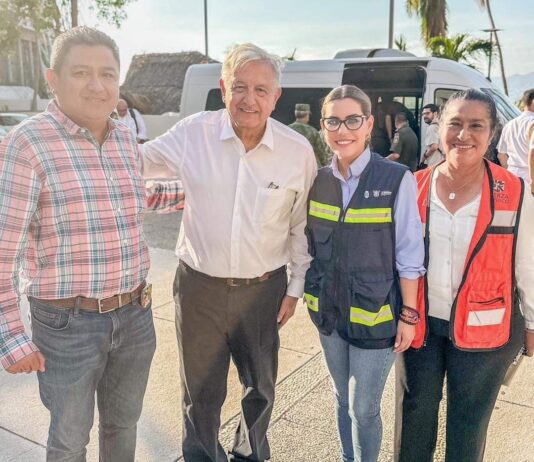 Se reúnen Evelyn Salgado y Andrés Manuel López Obrador en el Centro de Mando para la Atención de Efectos del Huracán “Otis”