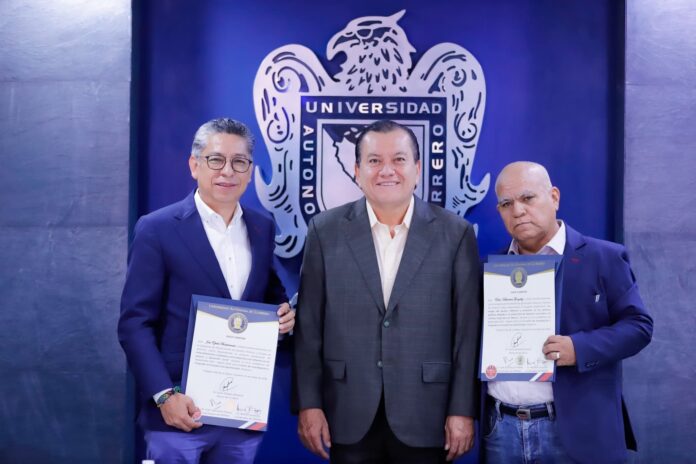 Acapulco, Gro., a 18 de Febrero del 2026.- El rector de la Universidad Autónoma de Guerrero (UAGro), Javier Saldaña Almazán entregó los primeros títulos de posdoctorado en la historia de esta institución.